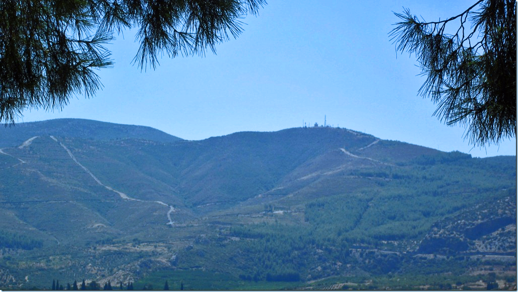 The House Of Mary is reached along the narrow road on the left and the house is situated on the other side of the hill, where the road disappears. On the right hand side the military watch towers which survey the site are clearly visible on top of the mountain. |