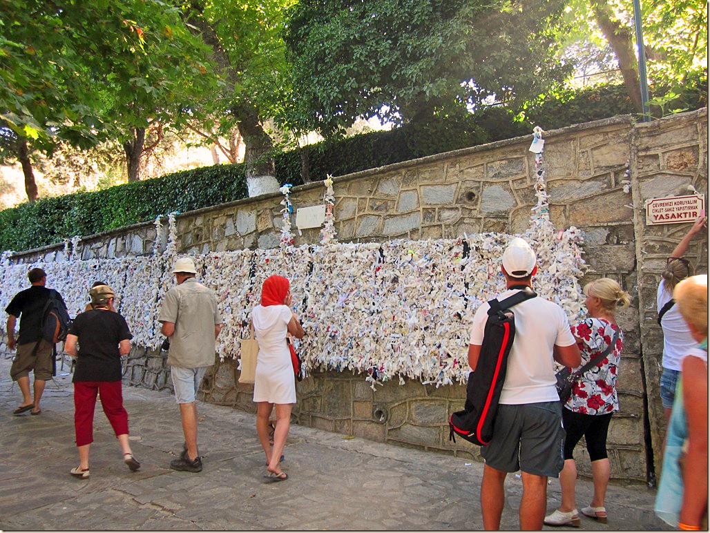The house of mary The following images show the House Of Mary, a home thought to be one where Mary Magdalene lived at one time in her life. Details relating to the Virgin Mary cannot be proven despite all the research made to this day. Mary had shown extreme care to lead a life of secrecy, leaving the apostles the task of introducing Christianity to the people. Biblical accounts state that St. John and Mary were entrusted to each other by Jesus before his crucifixion and John duly obliged. They both travelled to Ephesus at approx the year 42 AD. It is said that there was a church built in Ephesus dedicated to Mary long after her death. It was only allowed that churches of saints or martyrs of Christianity were granted permission to be built in Turkey, so I suppose this may be further evidence that Mary was held in high regard in this land. It is also recorded in Council proceedings and records, that Mary had stayed for a brief period in the location of Ephesus, or in a house in it’s immediate neighbourhood. She is said to have later moved to a permanent house on Mount Pion (some know it as Mount Nightingale, and it also has a Turkish name which I cannot pronounce or spell) where she lived until the age of 64 yrs and died in the year 46 AD. Christianity was not a wide spread religion in those days and the house where Mary was said to have spent her last days was forgotten until a vision by a German nun (Anna Katerina Emmerick, (1774 – 1821) who mentioned details of the house in her book, “The Life Of The Virgin Mary”) prompted the curiosity of two members of the French College in Athens to search for the site in the early 1890’s. They later discovered the house in ruins with only the foundations and the scattered stone blocks strewn around the area and realised the significance of the remaining structure. They confirmed it to be dated from the 1st century. It was finally rebuilt in 1951 from local accounts, and when visits paid by Pope Paul VI in 1967 and John Paul II in 1979 to Ephesus confirmed the belief that the Virgin Mary had lived and died in Ephesus. The house is now considered as a shrine by the Vatican. As well as in The Bible, Mary is recognised in the Quran and the Torah so this site is heavily guarded by the Turkish military against a terrorist attack. There is also an American air base nearby in Izmir, which I am told by the guide is also being manned by the Royal Air Force, similar to the American air base in Incirlik. This is presumably because of the failing economy and unrest in Greece, which is situated around 700 miles off the west coast. Potentially this could be a very volatile part of the world. You will see people of all faiths visiting The House Of Mary and the drive up to the top of the mountainous hill, through national park land where it is situated, is well worth the effort. Around the house is a wall and the face of the wall is covered by a trellis. This is used by people of all faiths to tuck pieces of paper on which they have written their individual wishes. There must be thousands of wishes from people all over the globe. It’s quite emotional seeing them tucking their little messages in between others onto The Wall Of Wishes. A landscape of wishes, each seems to support the one next to it. Apologies for the lengthy explanation, but many have not heard of the House Of Mary and are surprised to know that she was said to have ended her days in Turkey. The following images illustrate this attraction: |