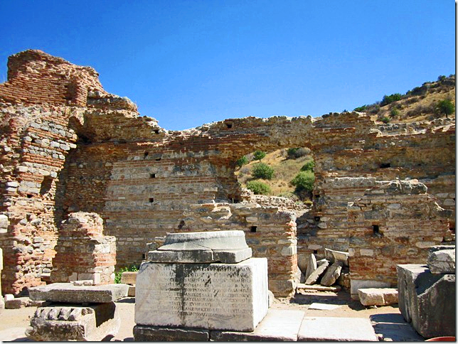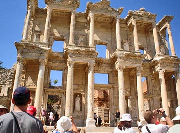 Celsus Library An ancient Roman building. It was built to honour the Roman Senator named Tiberius Julius Celsus Poleameanus. He died at the age of seventy before it was completed by his son in the year 135 AD. The female statues that stand in the niches (one can be seen in the picture) are copies. The originals were taken to Austria. In the center of the building stood a statue of the goddess Athena, Protector of Science. |