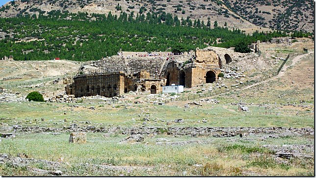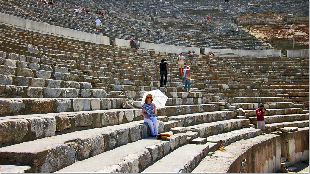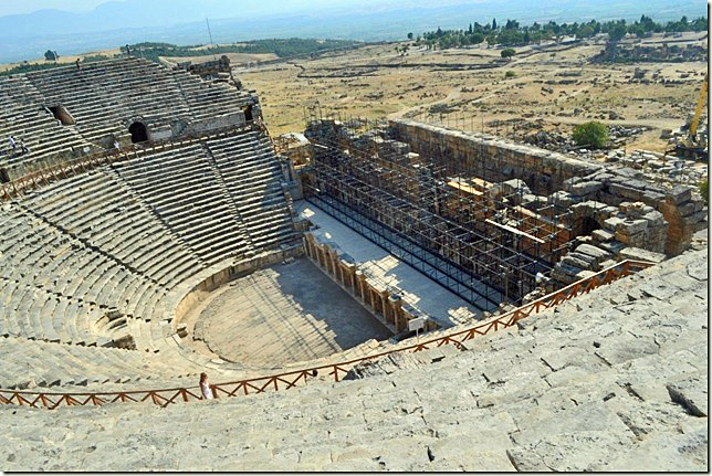 The great/grand theatre Built in the 2nd century, AD at Hierapolis by Emperor Hydrianus, it is just a short walk from The Travertines. It is built to seat 25,000 people. The Romans always built their theatres to seat 10% of the population, so that’s how it is known that the town of Ephesus contained 250,000 people. |